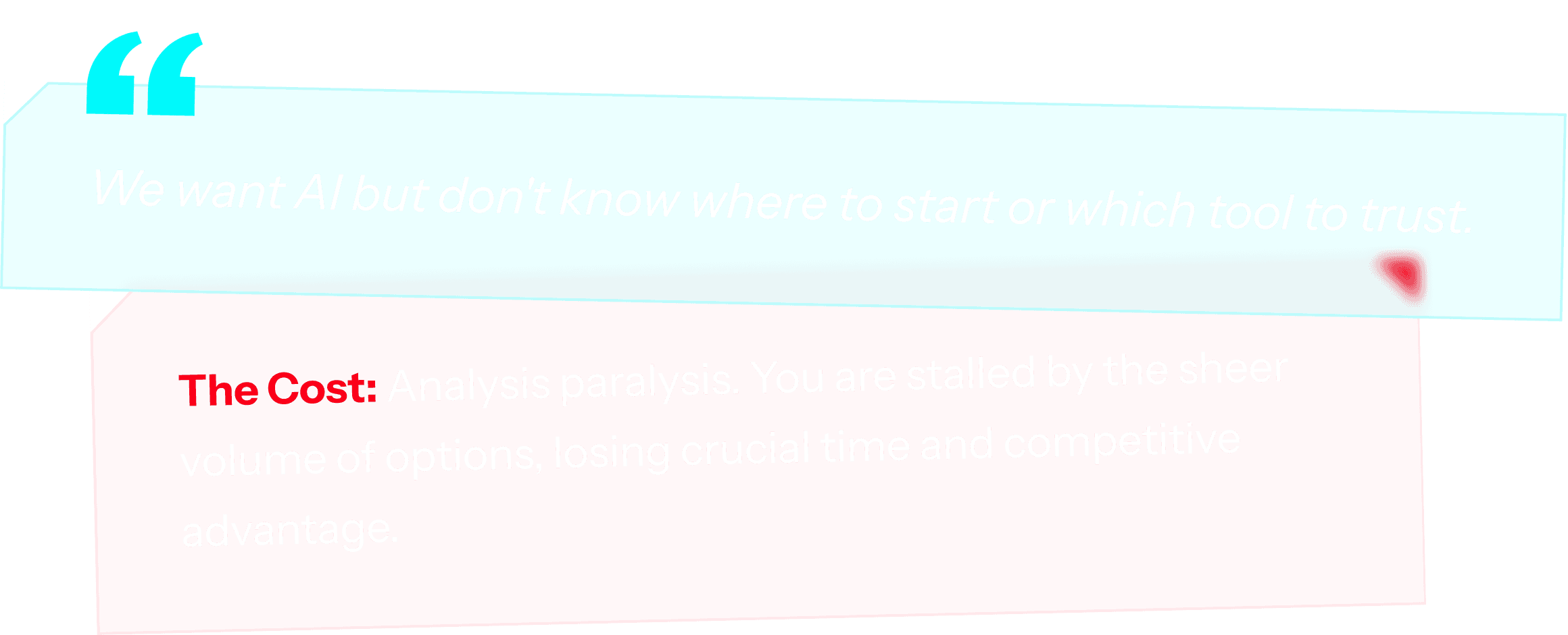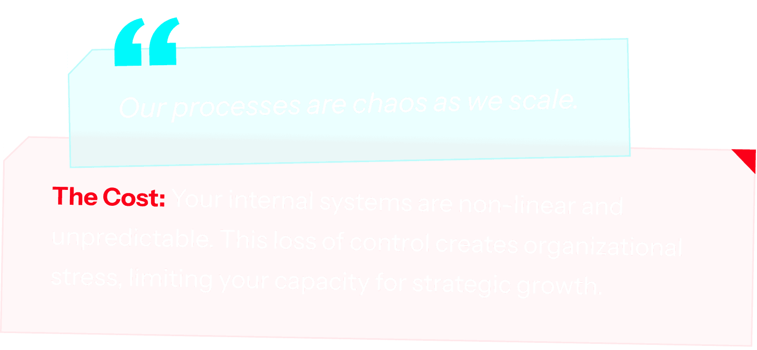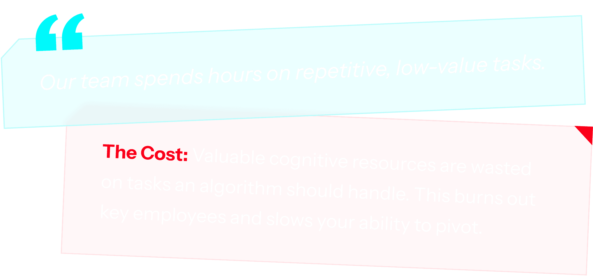 In the age of hyper-speed AI, operational unknowns cost you time and budget. We pinpoint exactly where your team is wasting precious hours and deliver your execution-ready roadmap in 4–6 weeks.